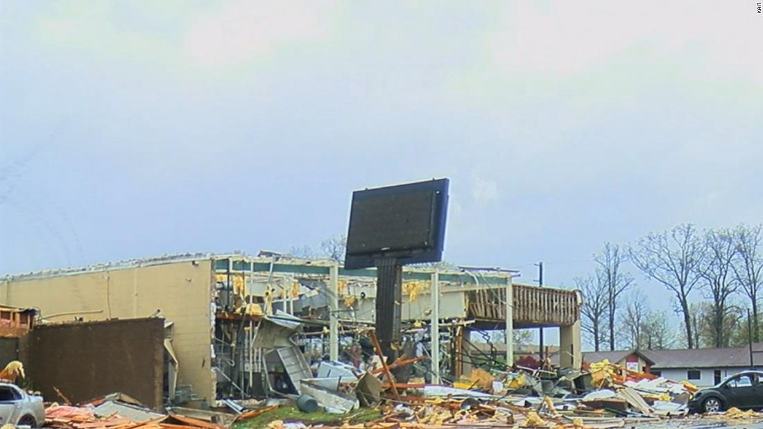 Images posted on social media, including from the Jonesboro Police Department, showed broken walls, flattened commercial buildings and debris scattered across parking lots.